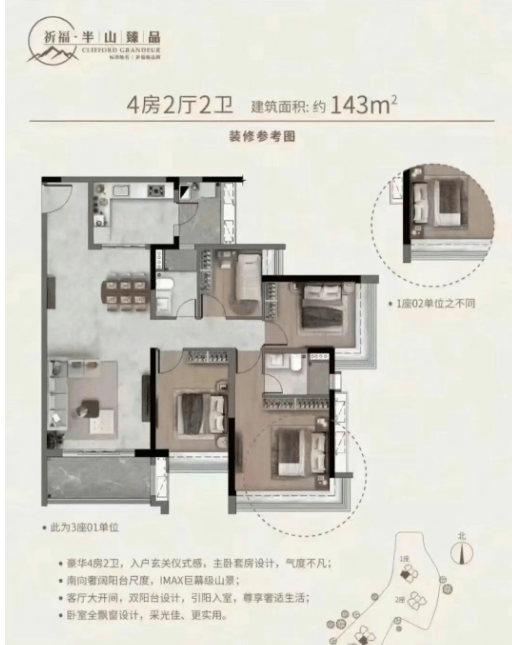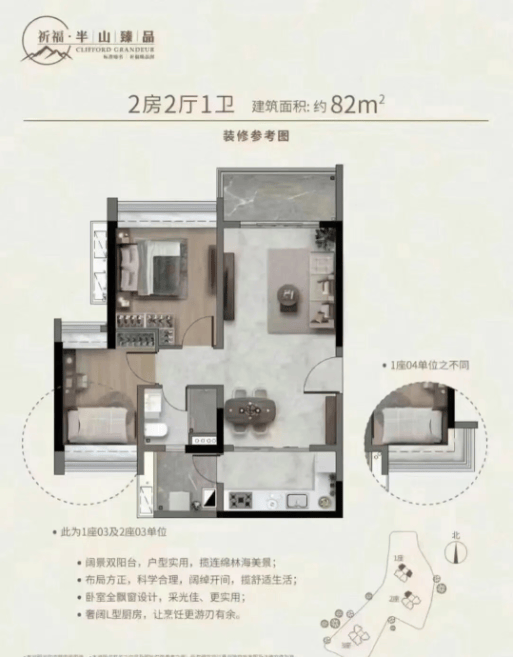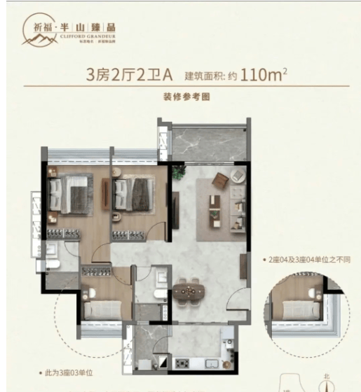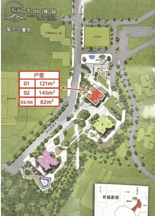 目前正在售户型以82㎡三房、110–121㎡四房、145㎡大四房为从,是祈福新邨近年推出的高端改善组团,