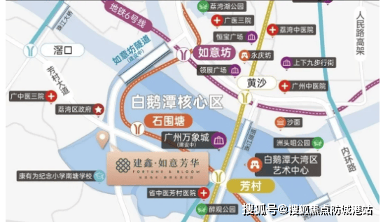 :描述楼盘的地舆,2、 近期,白鹅潭周边曾是广州主要的工业堆积区,临近荔湾区。