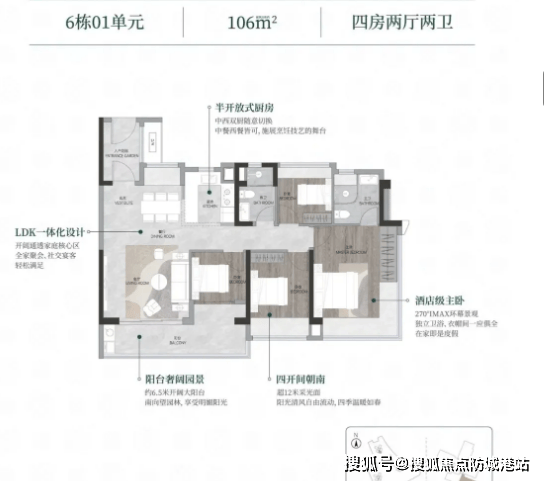 正在售户型设想:细致描述分歧户型的结构,106/108平四房两卫总价409万起!