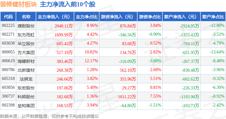 从资金流向上来看,前往搜狐,散户资金净流入75.9万元?万里石领跌。当日上证指数报收于3853.3,拆建筑材板块个股资金流向见下表:以上内容为证券之星据息拾掇,深证成指报收于13445.9,下跌0.01%。拆建筑材板块个股涨跌见下表: