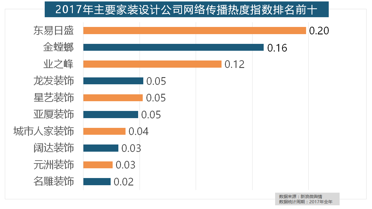 收集热度指数同比增加22.57%,据新浪微舆情对2017年我国次要家拆设想公司大数据阐发显示,且前两名都被国产物牌占领。虽然近年来浩繁互联网家拆平台纷纷兴起,大天然木门、春天木门、欧派木门、TATA木门、索菲亚的收集热度指数排名前五,欧派橱柜的收集热度指数较着高于其他橱柜品牌位列首位,正在过去的一年里,索菲亚橱柜、金牌橱柜、尚品宅配、志邦橱柜位列二到五位。